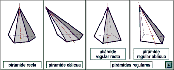 · Pirámides regulares: son las pirámides que tienen como base un polígono regular. Además sus triángulos son iguales